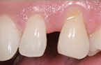 | Example 3: This example illustrates how composite restorations can close spaces between teeth as well as repair the exposed root of the tooth. | |